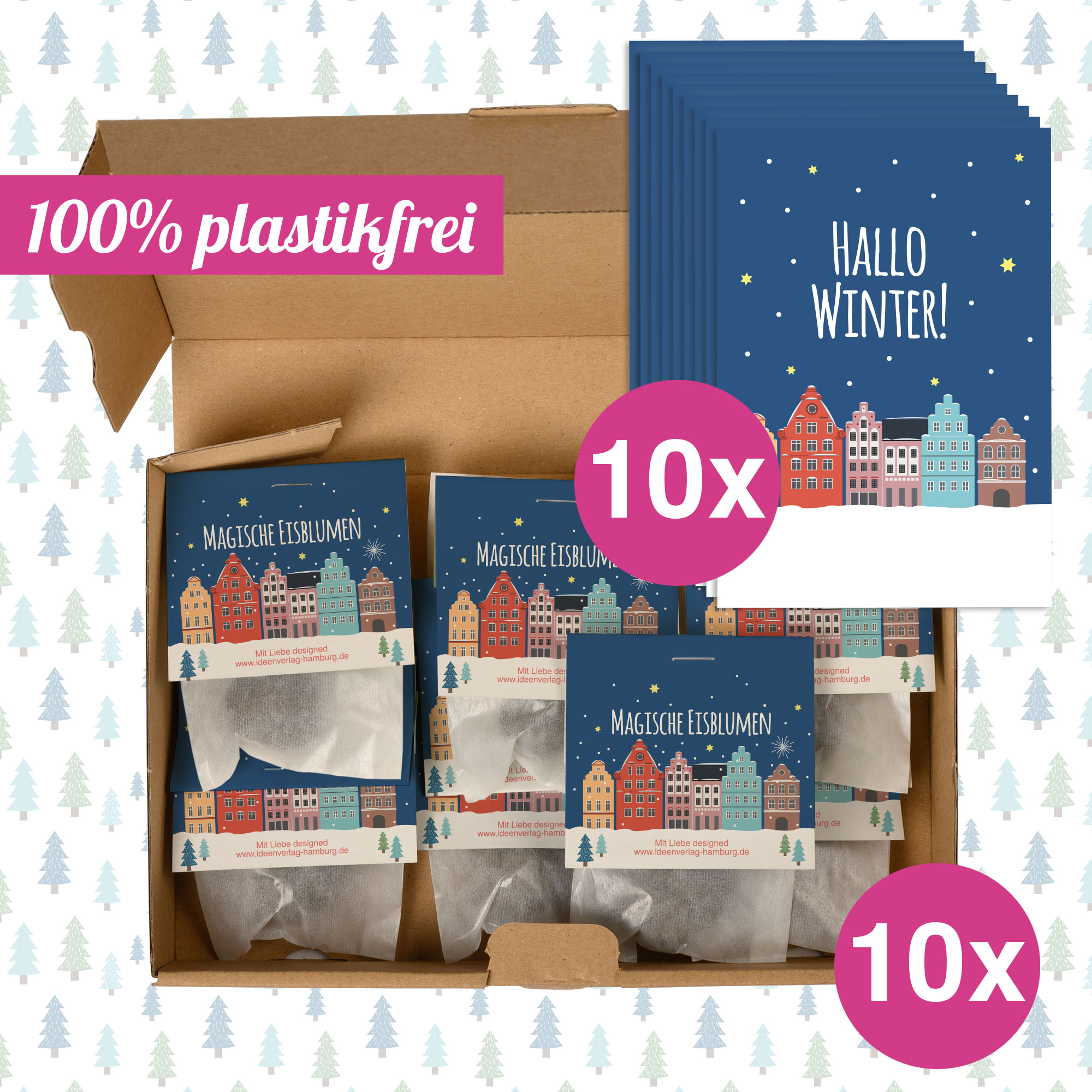 🌱 10x „Winterlandschaft“ Winter-Samenbomben inkl. 10x Geschenkkarten, je einzeln und 100% plastikfrei verpackt