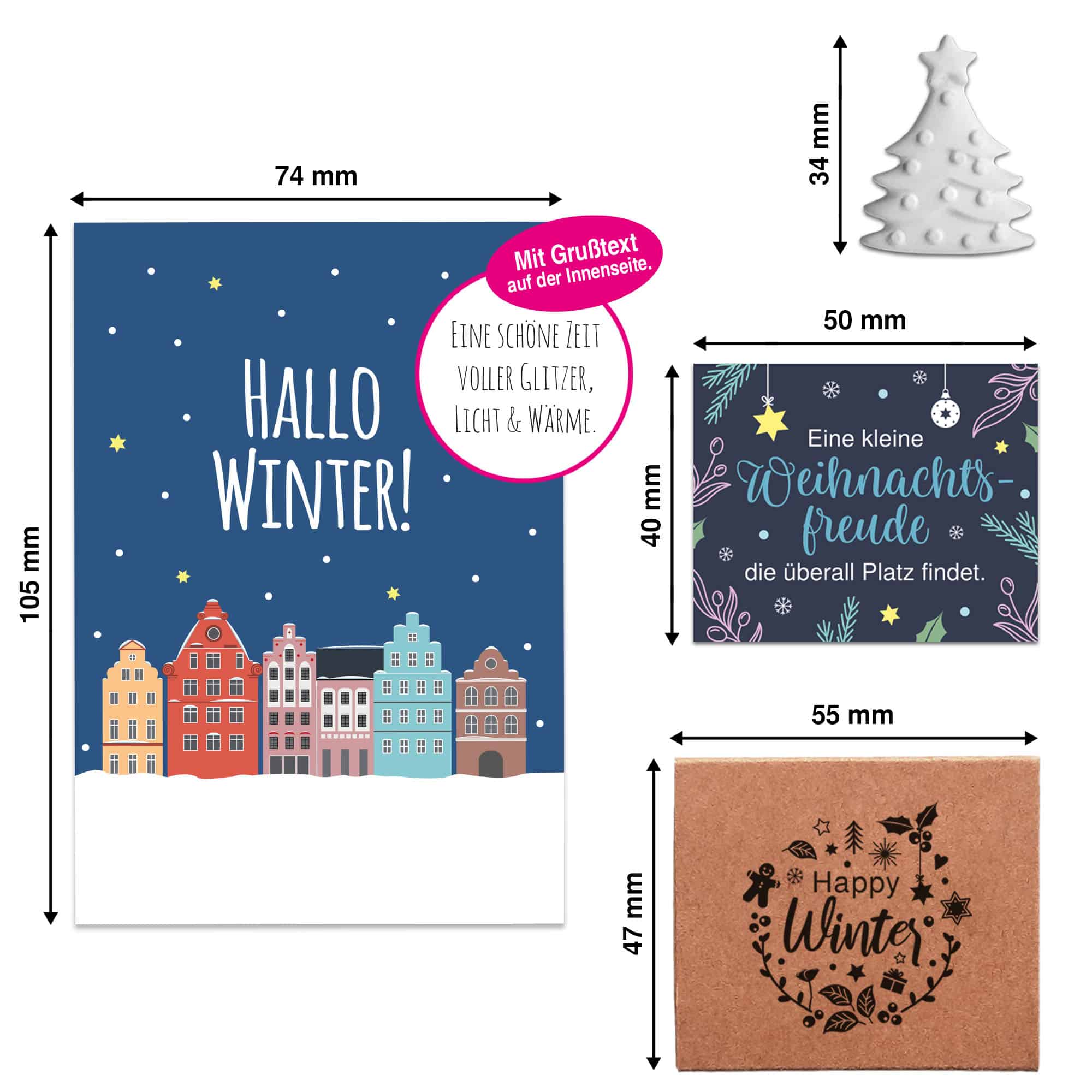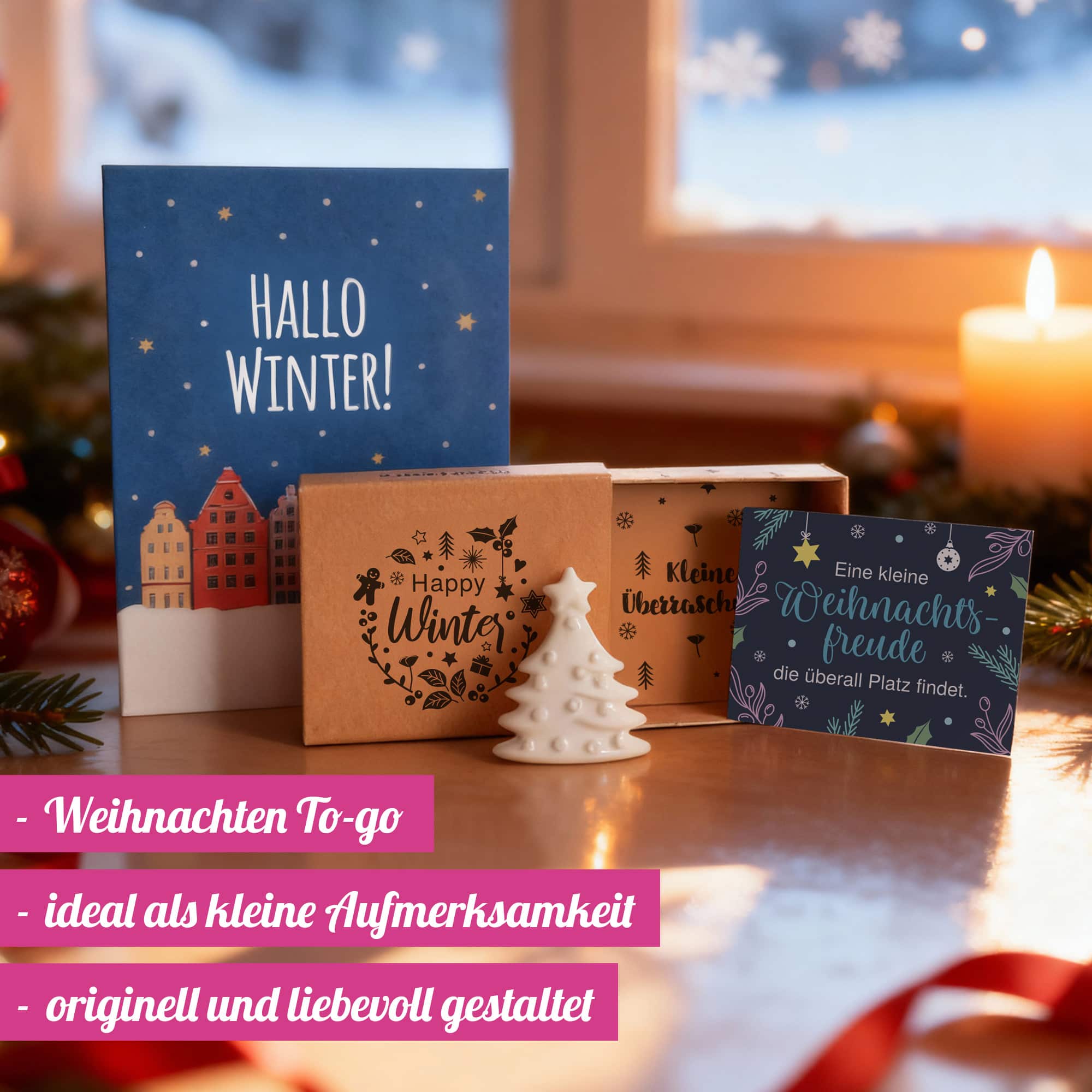 Wunschboten mit festlicher Überraschung – Schachtel aufschieben und das kleine Tannenbäumchen mit liebevoller Botschaft entdecken: Das sind die einzigartigen „Tannenbaum“ Wunschboten vom Ideenverlag-Hamburg. Ein nachhaltiges Geschenk zu Weihnachten, als Nikolausgruß oder als kleines Wichtelgeschenk in der Adventszeit. Ideal als Giveaway für Freunde, Familie, Kinder, Kollegen, Nachbarn und andere Lieblingsmenschen. Ein Mitgebsel mit Überraschungseffekt – denn die detailverliebten Figürchen und die passenden Geschenkkarten verbreiten sofort festliche Stimmung!